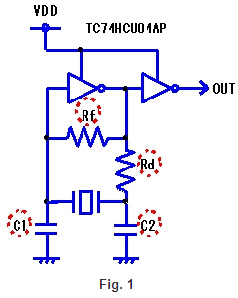 Table-1When反饋電阻(Rf)不是安裝在振蕩電路,如表1所示,諧振器不開始振蕩即使電源應(yīng)用于振蕩電路.除非適當(dāng)?shù)闹颠B接的電阻器,振蕩不開始正式晶體諧振器的模式,但泛音振動或基本振蕩開始.在基本諧振器(MHz頻帶)反饋電阻通常是1 MΩ.的泛音諧振器(MHz頻帶)值取決于集成電路和頻率特性,但是在幾個kΩ——數(shù)萬kΩ的范圍.的音叉型諧振器(千赫樂隊),需要連接一個電阻10 MΩ或更多.