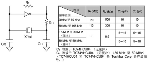 如果振蕩電路中負(fù)載電容的不同,可能導(dǎo)致振蕩頻率與設(shè)計(jì)頻率之間產(chǎn)生偏差,如下圖所示.電路中的負(fù)載電容的近似表達(dá)式 CL≒CG × CD / (CG+CD) + CS.