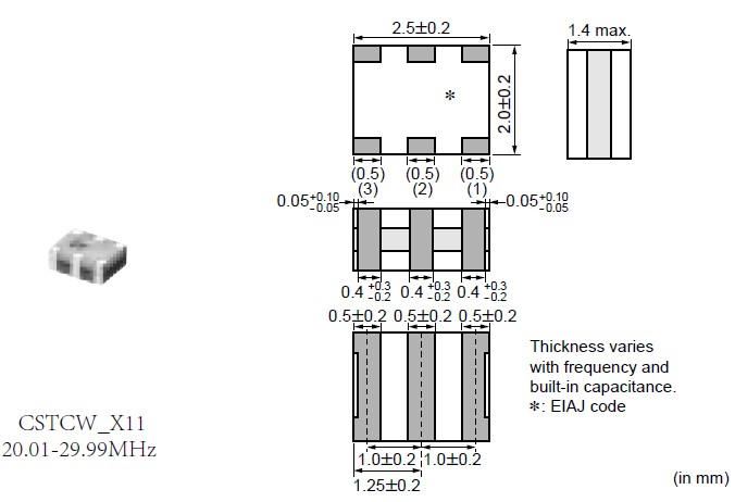 村田晶振,CSTCW_X11,村田貼片晶振 ,三腳貼片陶瓷晶振是指晶振內部本身有自帶負載電容的陶瓷些振器, “壓電陶瓷”, 與CR,LC電路不同,陶瓷振蕩子利用的是機械諧振而不是像壓電石英晶體一樣電諧振的方式起振.這意味著它基本上不受外部電路或電源電壓波動的影響.從而可以制作成無需調整的高度穩定的振蕩電路.作為微處理器在電路中使時鐘振蕩器的匹配最適合的元件,并且得到了廣泛應用.ZTT三腳晶振產品系列可用于振蕩電路設計,無需外部負載電容器,既獲得了高密度安裝,又降低了成本.產品被廣泛應用到數碼電子產品,家用電器,比如電話機,游戲機等電子產品.