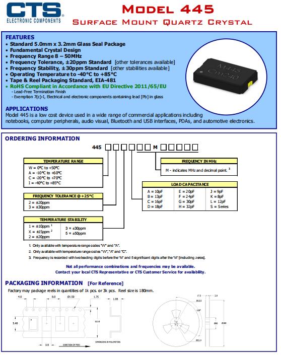 | 445C25D24M00000 | CTS無(wú)源貼片晶體 | 445 | 24MHz | 0.197" L x 0.126" W (5.00mm x 3.20mm) |