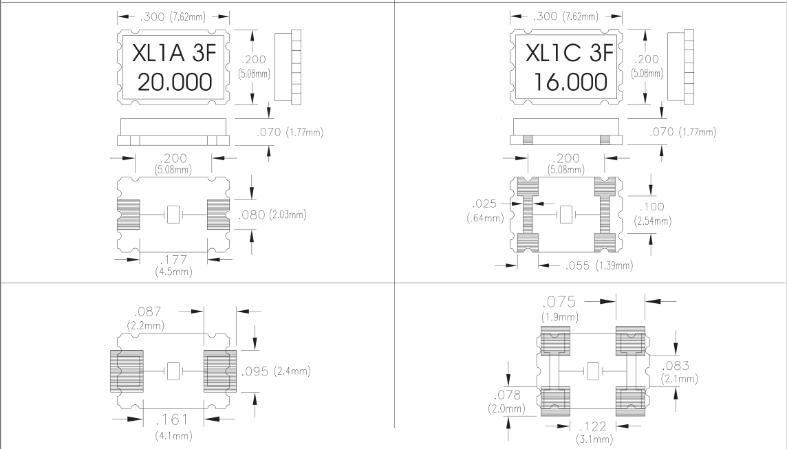 ConnorWinfield晶振,XL-1A-032.0M,6G無(wú)線通信晶振 尺寸圖