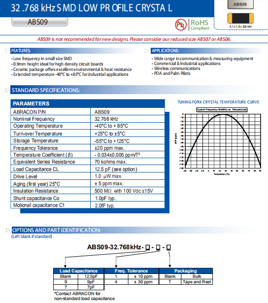 ABRACON晶振,ABS09-32.768KHZ-1-T晶振,ABS09晶振,貼片晶體.貼片表晶32.768K系列具有超小型,薄型,質地輕的表面貼片音叉型石英晶體諧振器,晶振產品本身具備優良的耐熱性,耐環境特性,在辦公自動化,家電領域,移動通信領域可發揮優良的電氣特性,符合無鉛標準,滿足無鉛焊接的回流溫度曲線要求,金屬外殼的石英晶振使得產品在封裝時能發揮比陶瓷晶振外殼更好的耐沖擊性能.