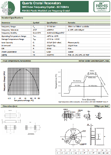 AEL晶振,PSX-315晶振,石英晶體諧振器.貼片晶振本身體積小,超薄型石英晶體諧振器,特別適用于有目前高速發展的高端電子數碼產品,因為晶振本身小型化需求的市場領域,小型,薄型是對應陶瓷諧振器(偏差大)和普通的石英晶體諧振器(偏差小)的中間領域的一種性價比較出色的產品.產品廣泛用于筆記本電腦,無線電話,衛星導航HDD,SSD,USB,Blu-ray等用途,符合無鉛焊接的高溫回流焊曲線特性.