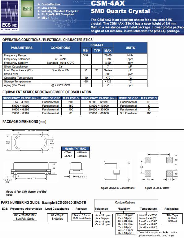 | ECS-40-20-28AX-TR | ECS晶振 | CSM-4AX | 4MHz | -10°C ~ 70°C |