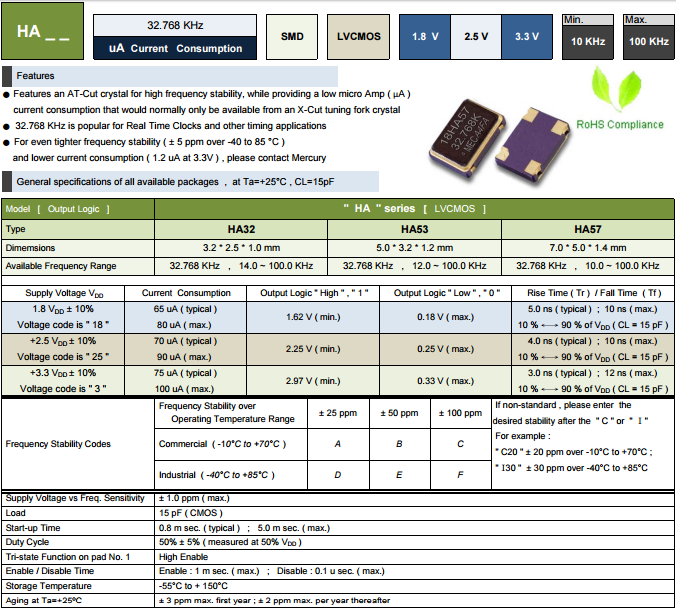 | 輸出頻率范圍 | fo | 32.768KHZ,14~100KHZ |