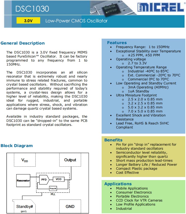 | DSC1030BE2-027.1200 | Microchip晶振 | DSC1030 | 27.12MHz | 3V |