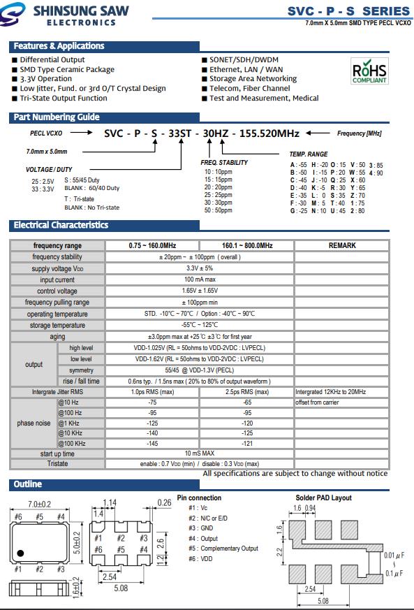 韓國新松晶振,SVC-P-S有源晶振,SVC-P-S-33ST-30HZ-120.000MHz晶振,小型SMD有源晶振,從最初超大體積到現在的7050mm,6035mm,5032mm,3225mm,2520mm體積,有著翻天覆地的改變,體積的變小也使產品帶來了更高的穩定性能,接縫密封石英晶體振蕩器,精度高,覆蓋頻率范圍寬的特點,SMD高速自動安裝和高溫回流焊設計,Optionable待機輸出三態輸出功能,電源電壓范圍:1.8V~5V,高穩定性,低抖動,低功耗,主要應用領域:無線通訊,高端智能手機,平板筆記本WLAN,藍牙,數碼相機,DSL和其他IT產品的晶振應用,三態功能,PC和LCDM等高端數碼領域,符合RoHS/無鉛.