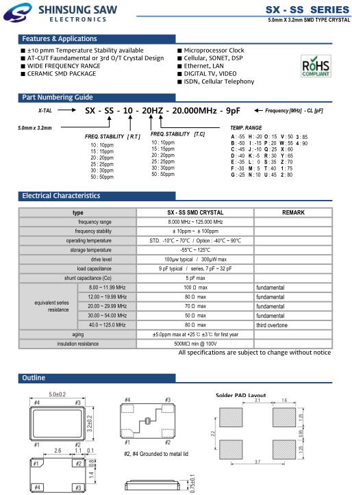 SHINSUNG晶振公司在"制造、使用、有效利用、再利用"這樣一個產(chǎn)品生命周期中,努力創(chuàng)造豐富的價值,給社會帶來溫馨和安寧,感動和驚喜,同時為減少環(huán)境影響,努力做好"防止地球變暖、有效利用資源、對化學(xué)物質(zhì)進行管理",實現(xiàn)與地球的和諧相處.SHINSUNG晶振,SX-SS無源晶體,SX-SS-10-20HZ-16.000MHz-6pF晶振.