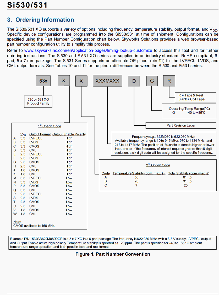 | 536AC156M250DG | Skyworks晶振 | Si536 | XO | 156.25 MHz | LVPECL | 3.3V | ±7ppm |