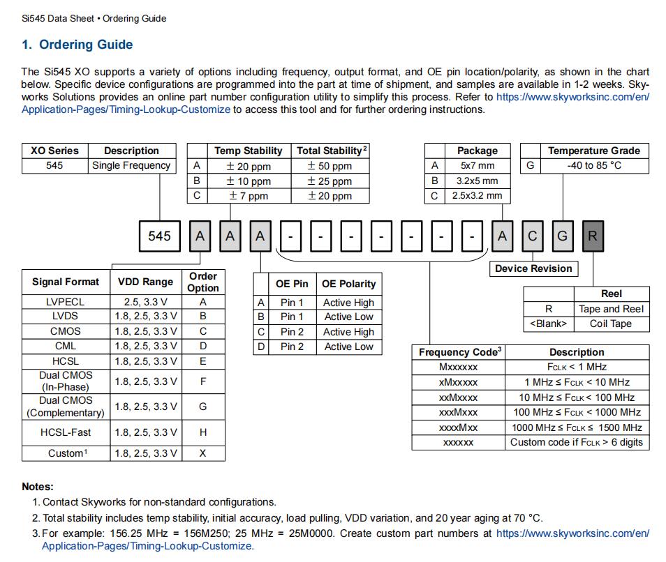 | 545BAA125M000BBGR | Skyworks晶振 | Si545 | 125 MHz | LVDS | 1.8V, 2.5V, 3.3V | ±20ppm |