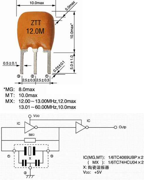 | 品名TYPEOFSWITCH | 諧振器RESONATOR | 型號MODEL NO | ZTT12.0MX | ||