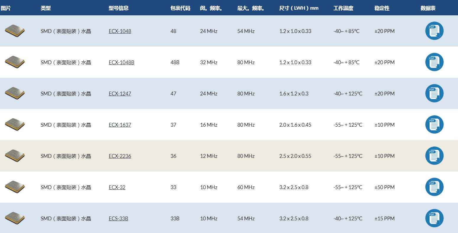 ECS兆級(jí)貼片晶振原廠代碼表: