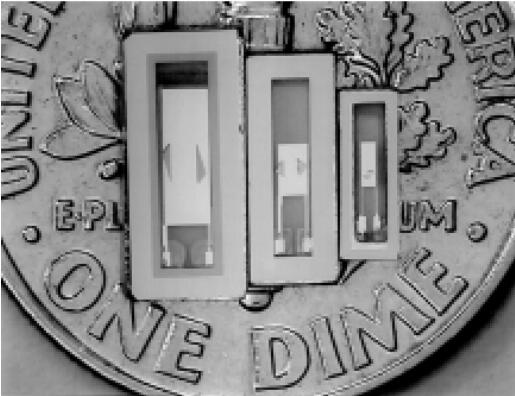 圖1:三種尺寸的AT條紋諧振器。從左到右:CX-1,CX-3和CX-4。